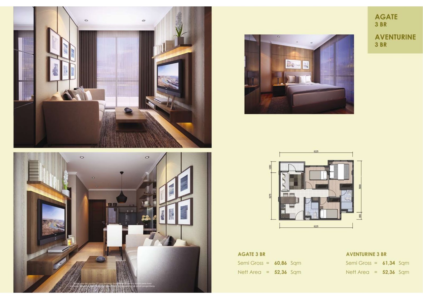 - Agate 3BR, Luas 60,86 Semi Gross. Harga mulai dari 1.082 juta.
